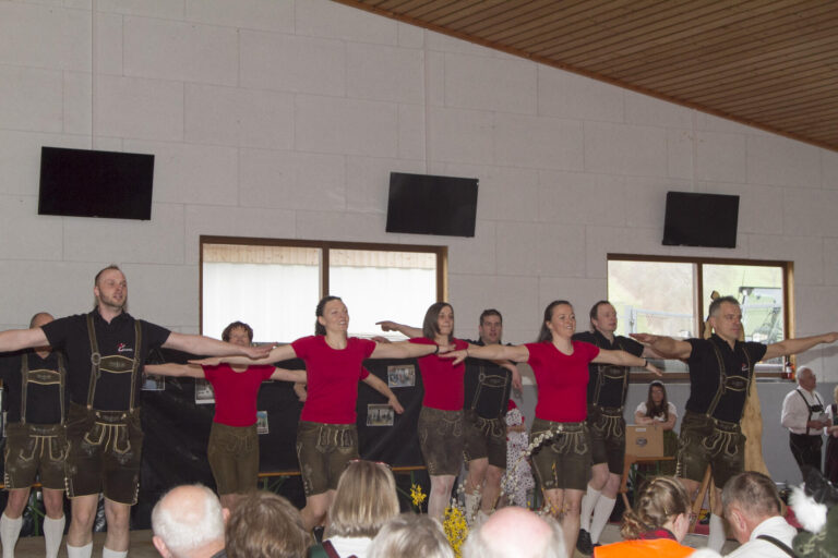 Zehn Volkstanz- und Schuhplattlergruppen waren der Einladung gefolgt und präsentierten eindrucksvoll ihr Können. Für die musikalische Umrahmung sorgte die Altbadseer Musi aus dem Ausseerland, die mit schwungvoller Musik, Gesang und traditionellem „Paschen“ das Publikum begeisterte.